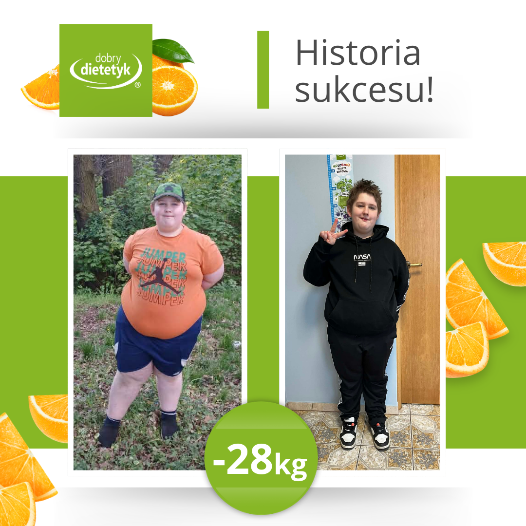 Kacper jest bardzo zmotywowany i zadowolony z efektów diety. Nie poddaje się i walczy dalej, by osiągnąć taka wagę, która nie będzie stanowiła zagrożenia dla jego zdrowia i życia.