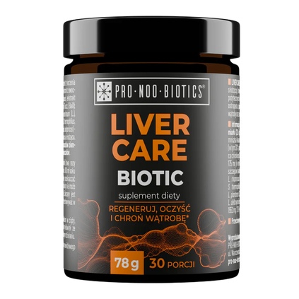 N-acetylocysteina 250 mg, ekstrakt mniszka lekarskiego 200 mg, ekstrakt chaga 200 mg (w tym 30% polisacharydów - 60 mg), ekstrakt cytryńca chińskiego 200 mg, ekstrakt ostropestu plamistego 175 mg (w tym 80% sylimaryna - 140 mg), liofilizat 7 szczepów bakterii - 2,5 miliarda (2,5x109) CFU1 (w tym: L. rhamnosus 6,1x108 CFU1, L. reuteri 6,1x108 CFU1, S. thermophilus 5,2x108 CFU1, L. casei 3,8x108 CFU1, L. plantarum 3,2x108 CFU1, L. acidophilus 0,61x108 CFU1, L. delbrueckii subsp. bulgaricus 0,12x108 CFU1), inulina 1552 mg. 1CFU - jednostka tworząca kolonię.