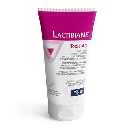 Lactibiane Topic AD to balsam zmiękczający skórę suchą z tendencją do atopii. Koi oraz łagodzi uczucie swędzenia. Zalecany do stosowania już od 1 dnia życia. Balsam probiotyczny powstał na bazie aktywnych składników zapewniających kompleksowe działanie dla skóry atopowej: Lizat fermentacyjny Lactobacillus zwiększa różnorodność komensalnej mikroflory skóry i utrzymuje równowagę mikrobiotyczną skóry. Prebiotyk α-gluko-oligosacharydowy chroni mikrobiotę skóry. LPC i witamina B3 pomagają wzmocnić barierę skórną. Laboratoire PiLeJe opracowało pierwszy balsam zmiękczający z linii Microbiota, aby zaspokoić potrzeby skóry ze skłonnością do atopii. Lactibiane Topic AD jest odpowiedni dla niemowląt, dzieci i dorosłych.Rekomendowany do suplementacji w: